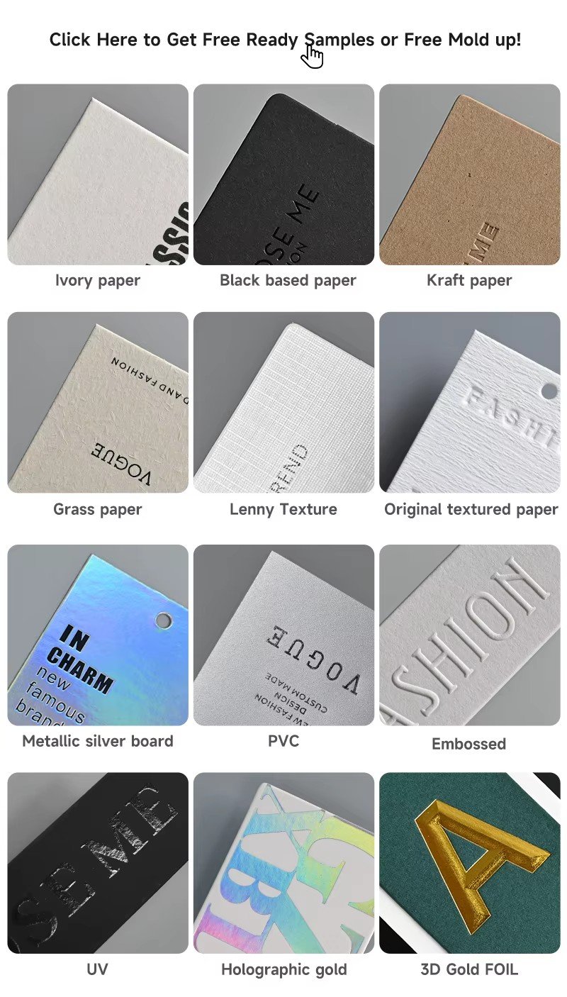 Choose your preferred size, paper weight, finish (matte, glossy, or textured), and shape — all tailored to your brand.